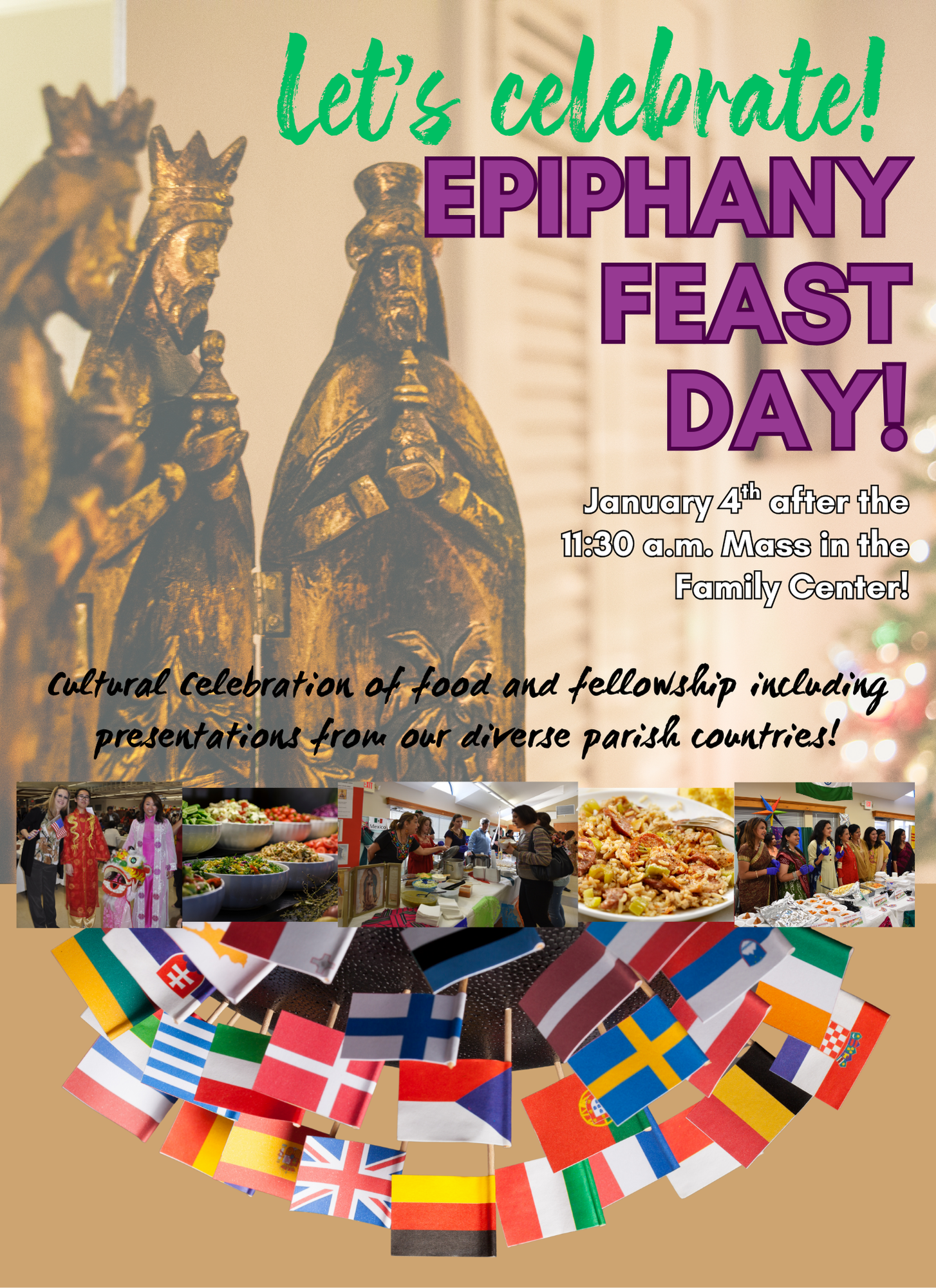 In celebration of the Feast of the Epiphany, the International Food Festival unites our parish community as we honor the rich diversity of our cultures, traditions, and values. Through food, fellowship, music, and the sharing of our God-given talents, we strengthen our identity as a vibrant and welcoming family of faith.